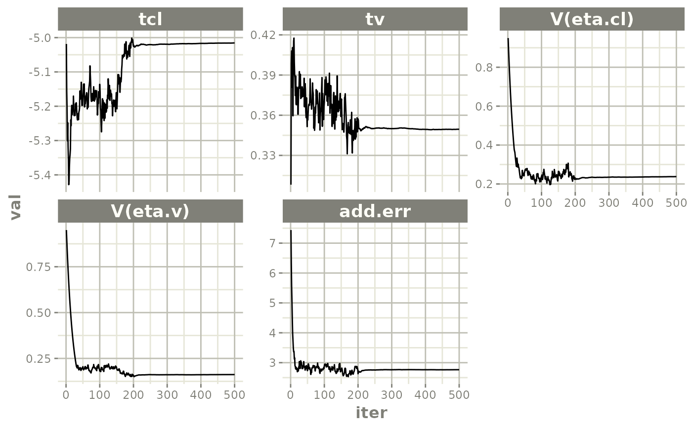 #> OBJF AIC BIC Log-likelihood Condition#(Cov) Condition#(Cor)