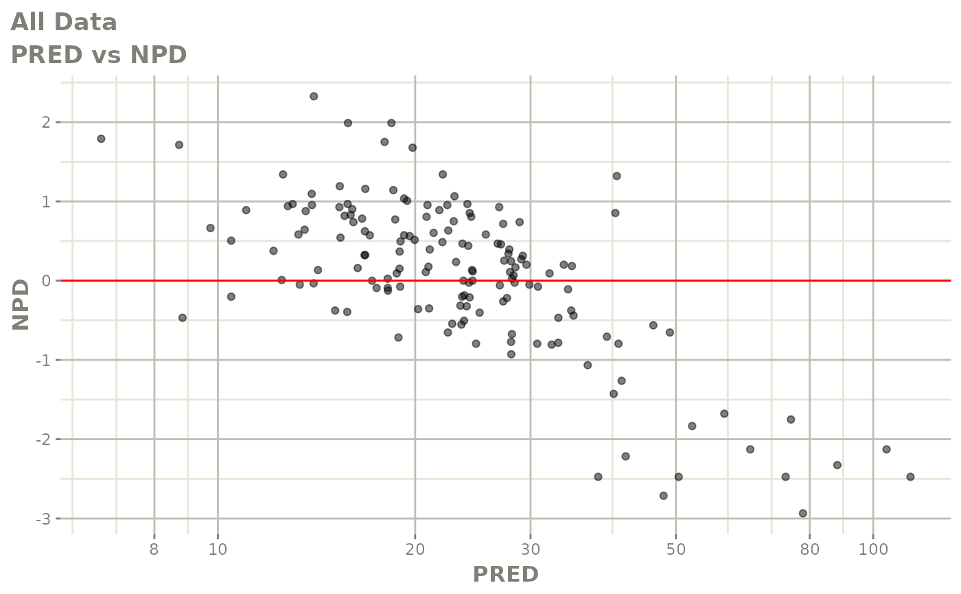 #> ID TIME DV EPRED ERES NPDE NPD PDE PD PRED RES WRES