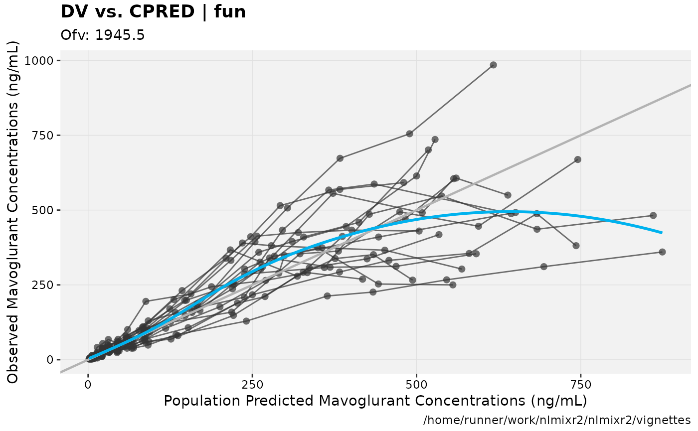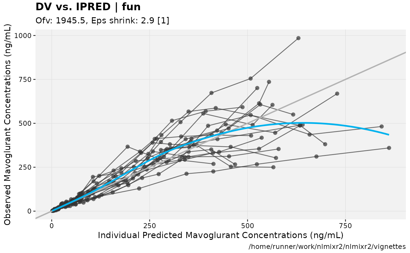 xpdb <- xpose_data_nlmixr(fit) ## Convert to nlmixr object