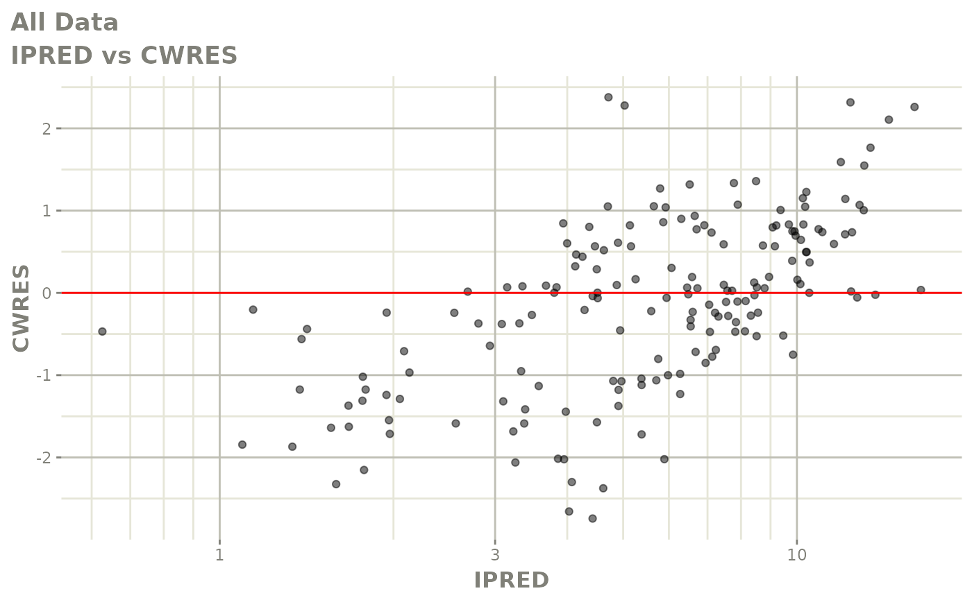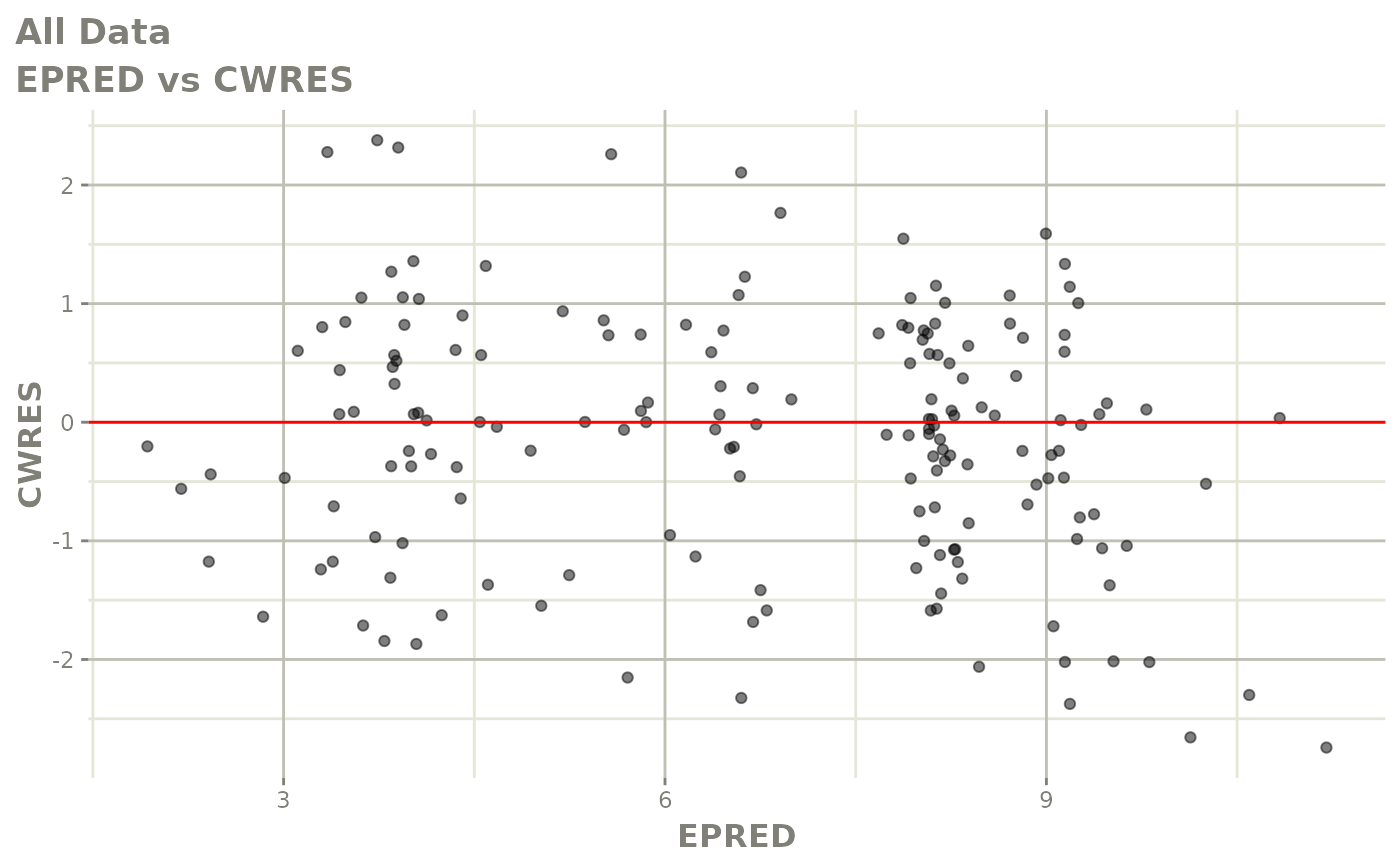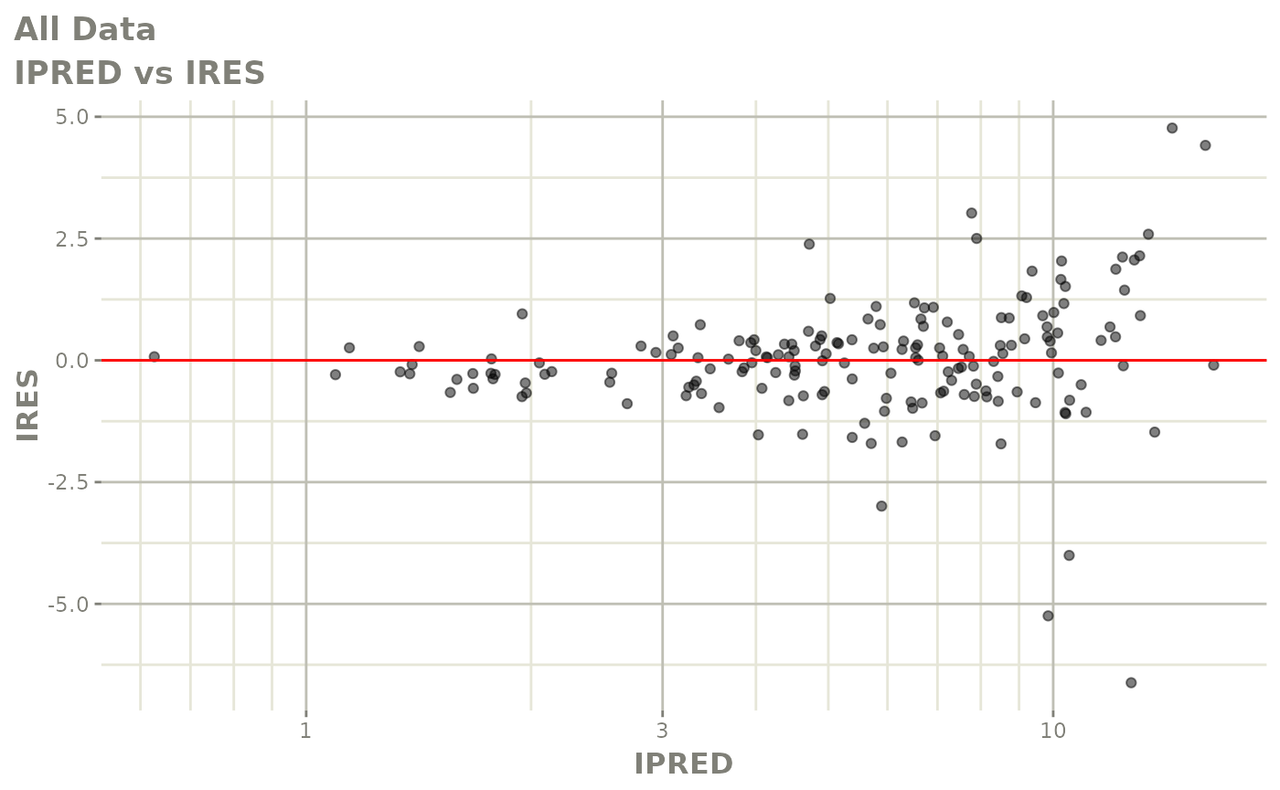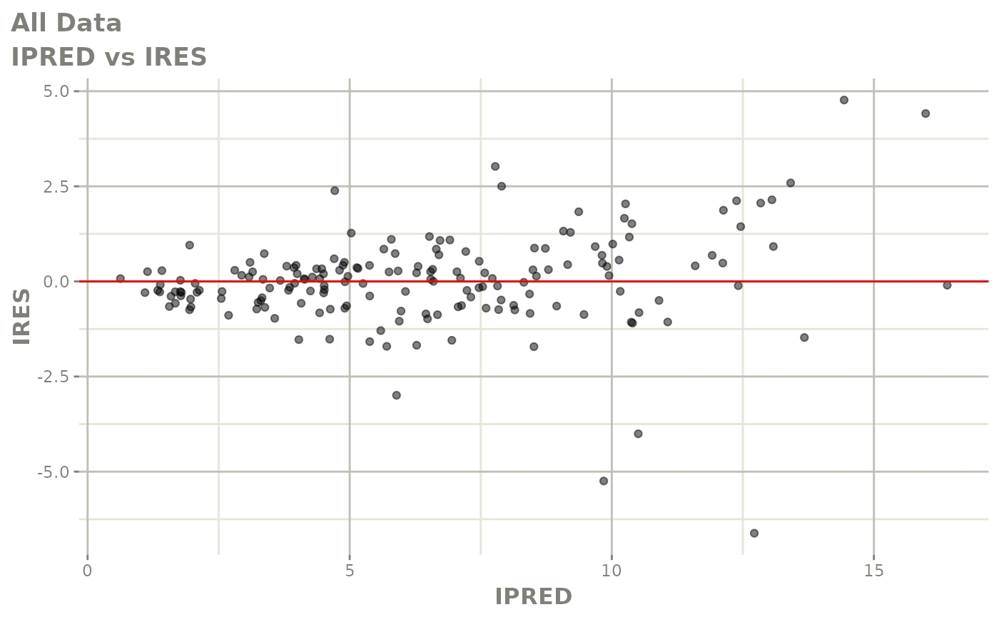 #> [====|====|====|====|====|====|====|====|====|====] 0:00:03FOCEi goodness of fit plots