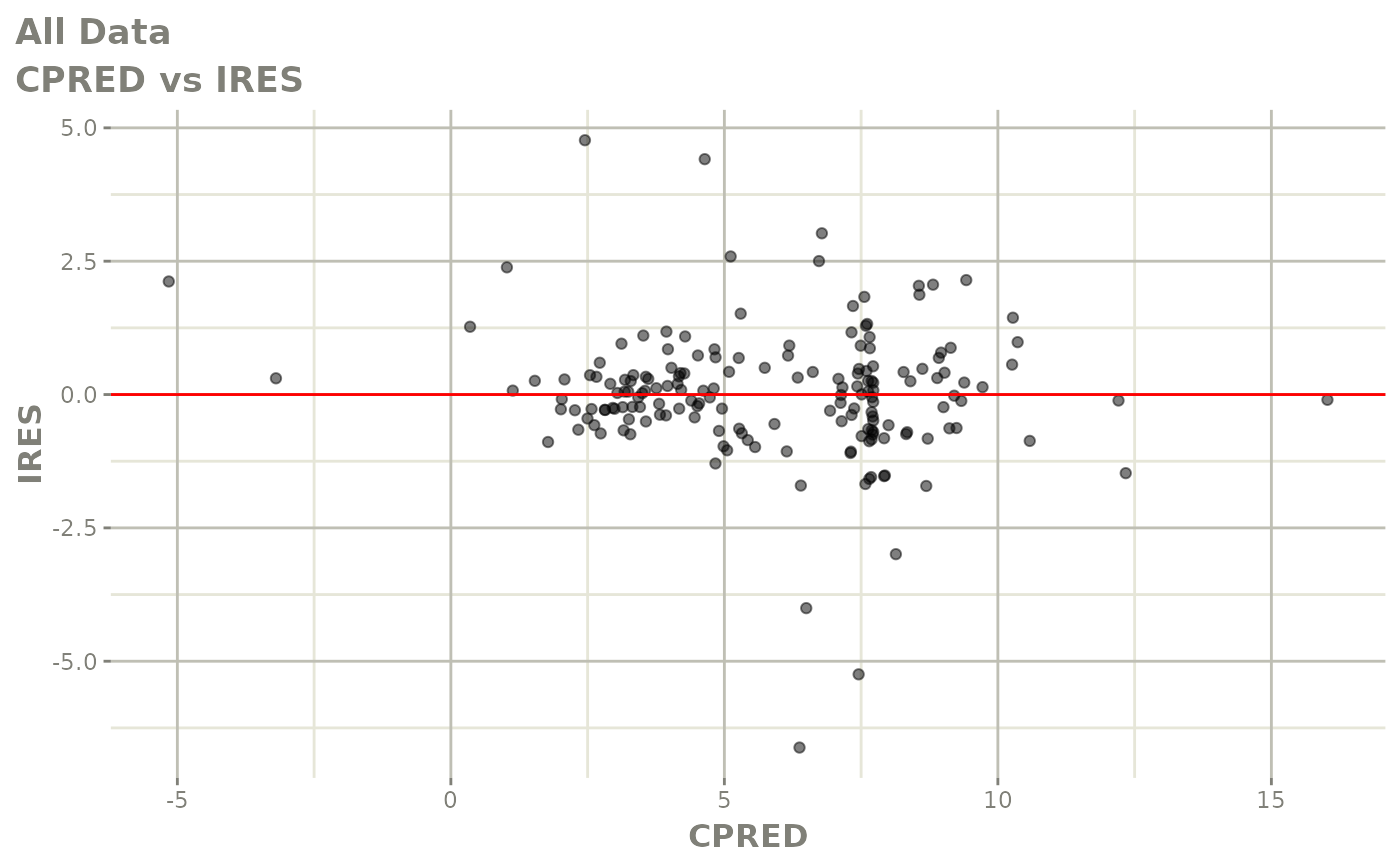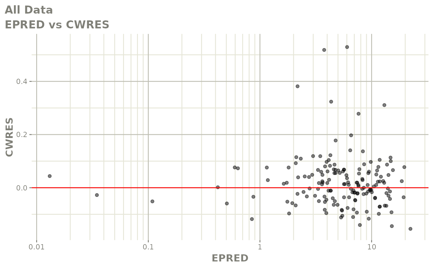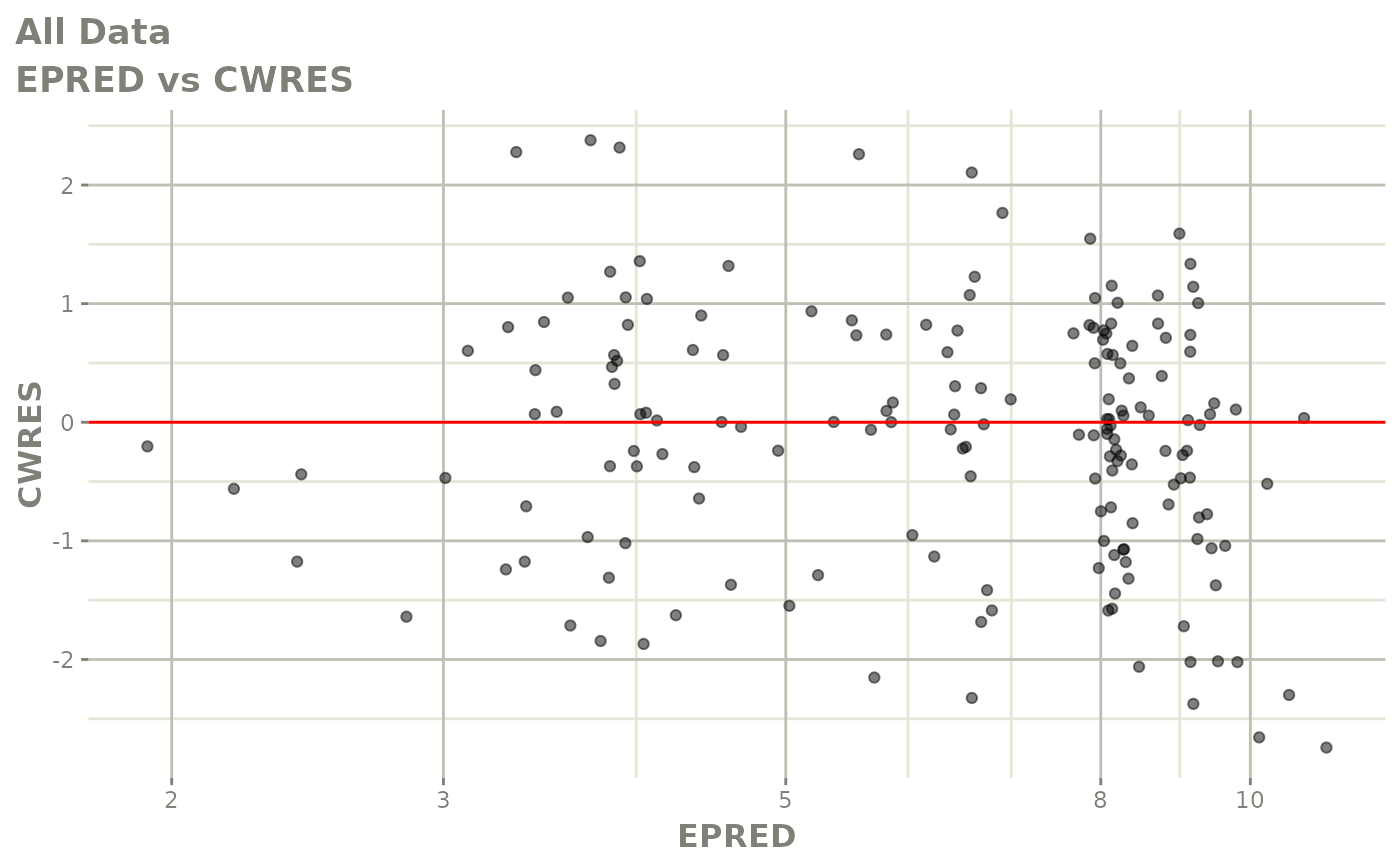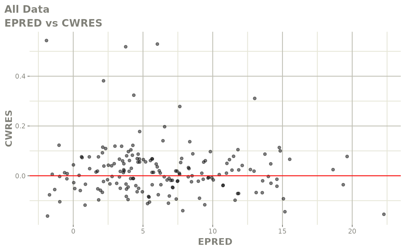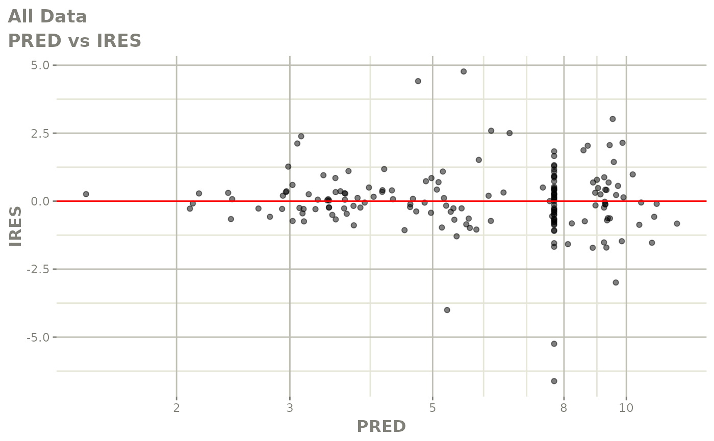 #> [====|====|====|====|====|====|====|====|====|====] 0:00:03FOCEi goodness of fit plots