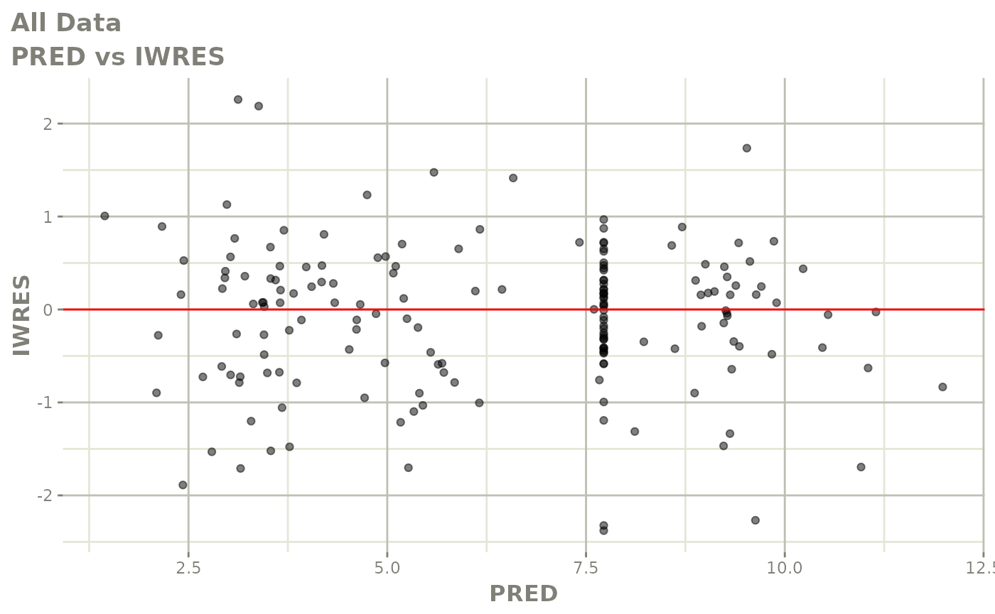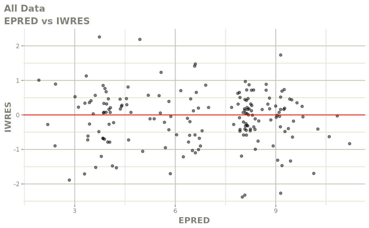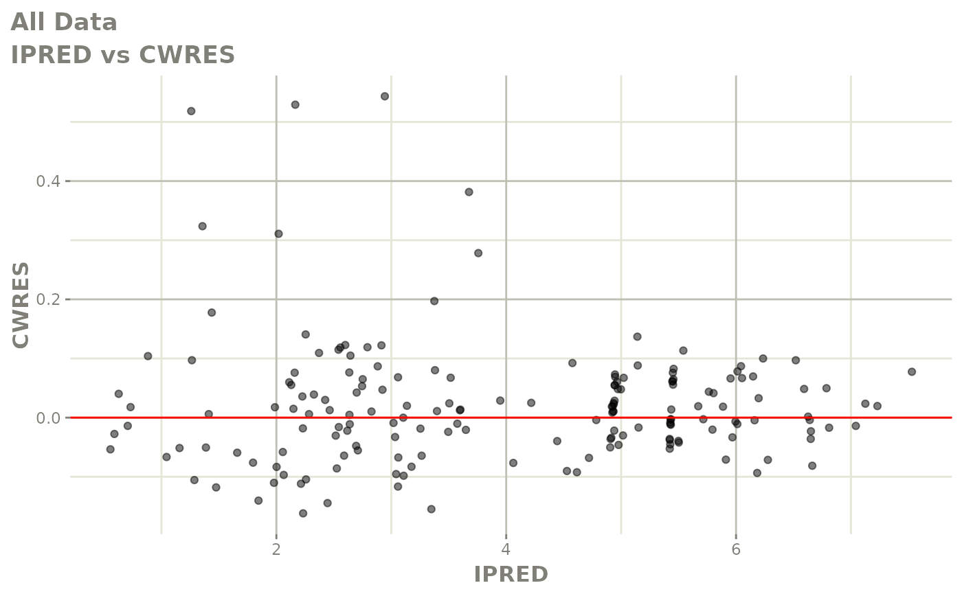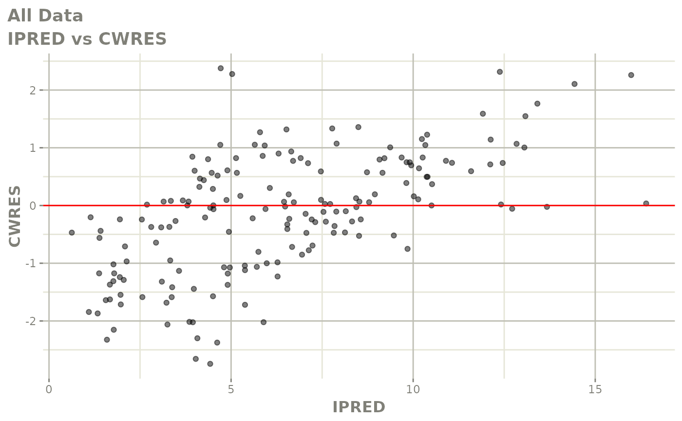 #> [====|====|====|====|====|====|====|====|====|====] 0:00:03FOCEi goodness of fit plots