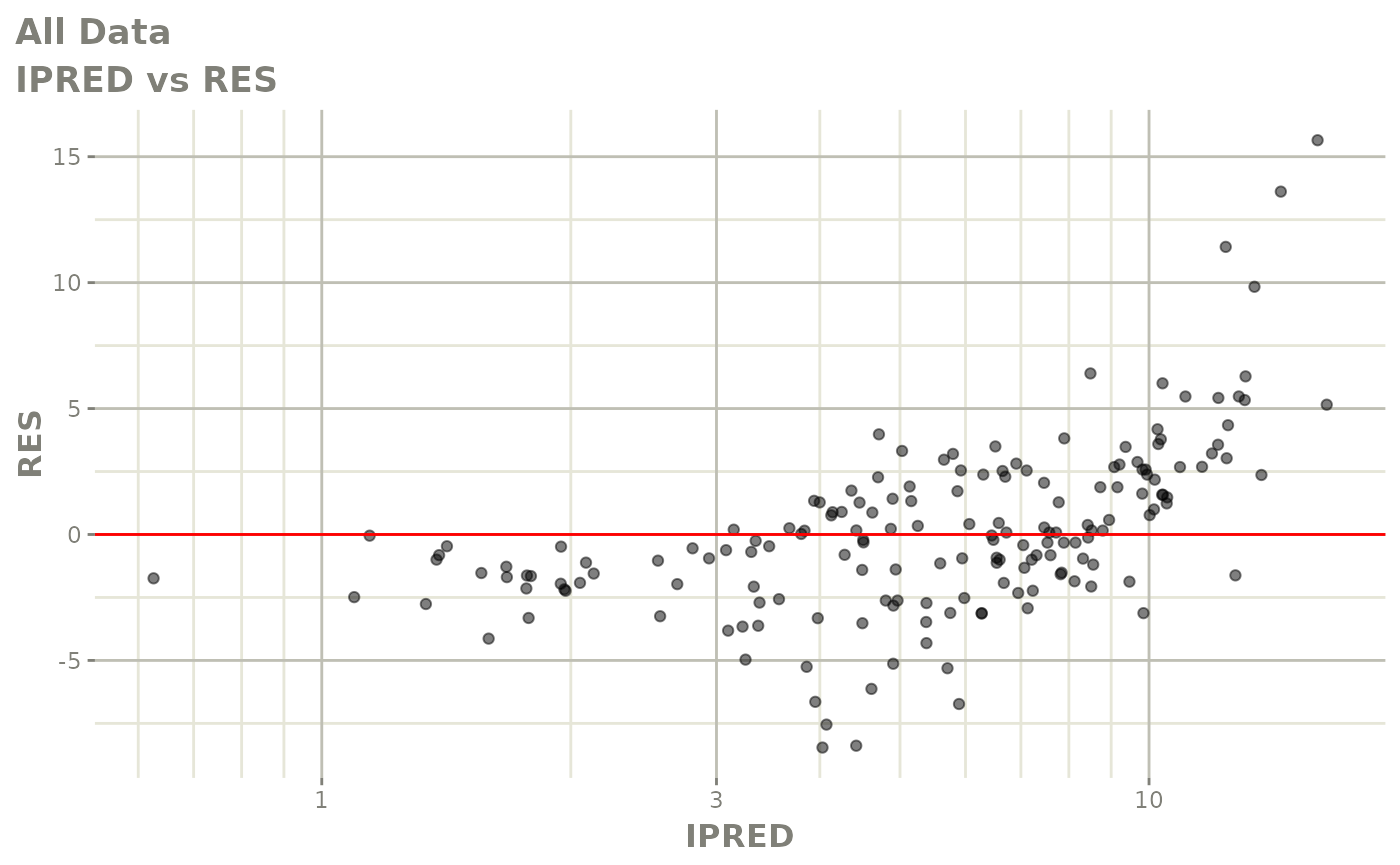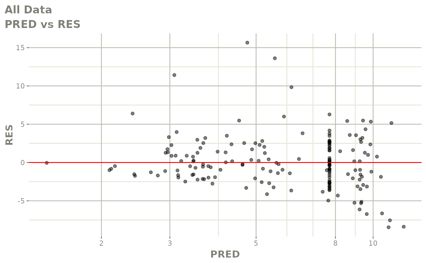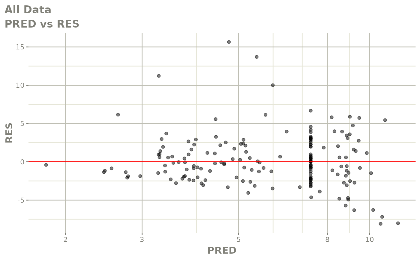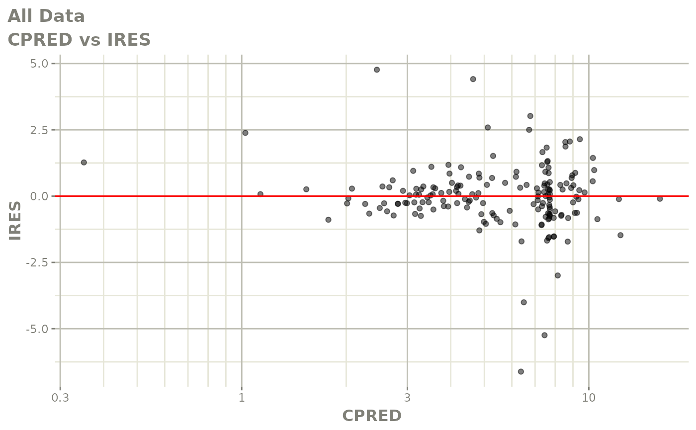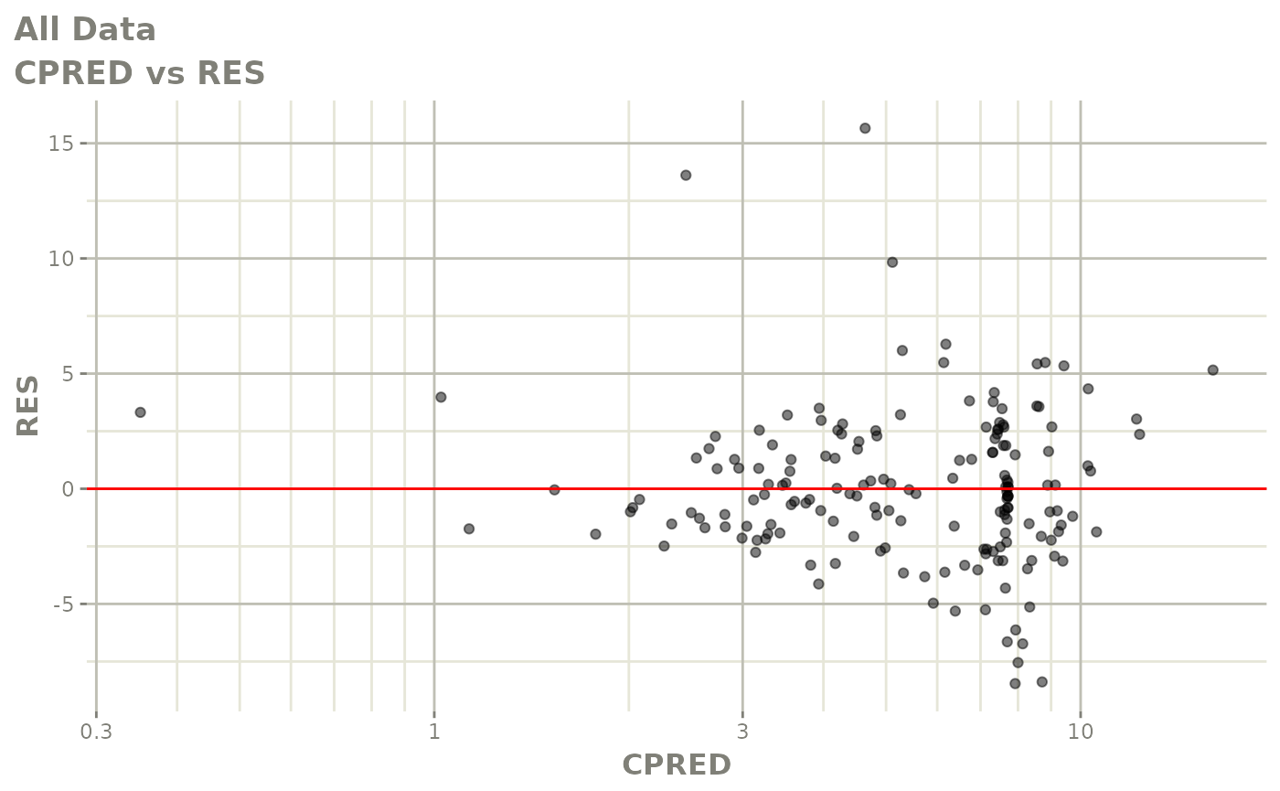 #> [====|====|====|====|====|====|====|====|====|====] 0:00:03FOCEi goodness of fit plots