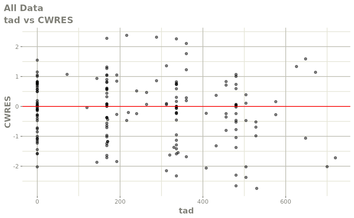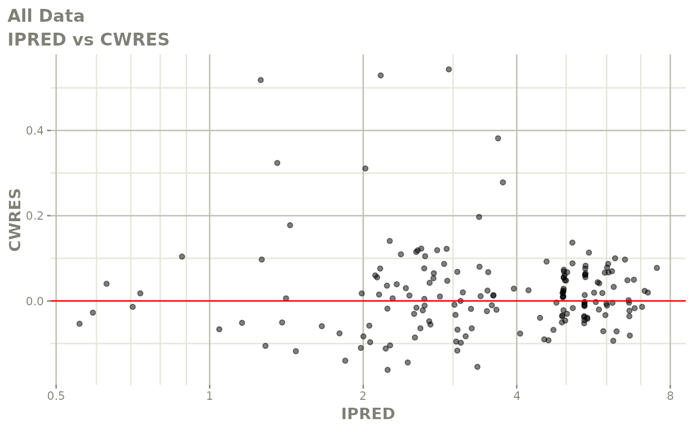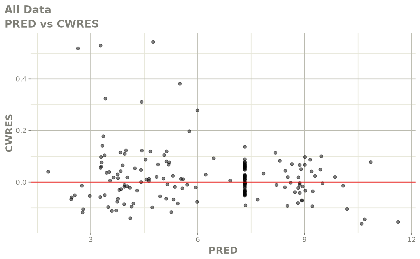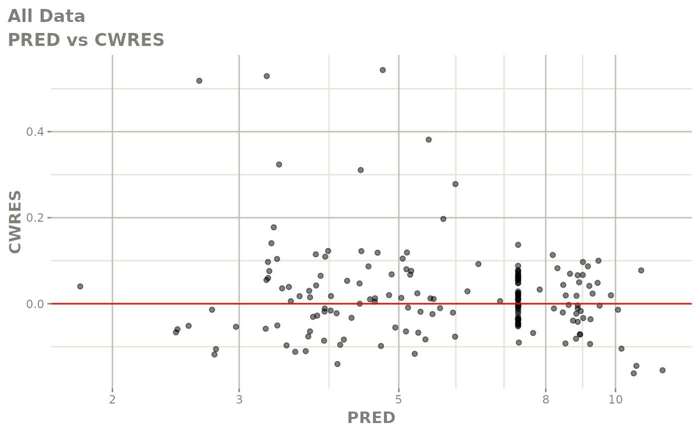 #> [====|====|====|====|====|====|====|====|====|====] 0:00:03FOCEi goodness of fit plots