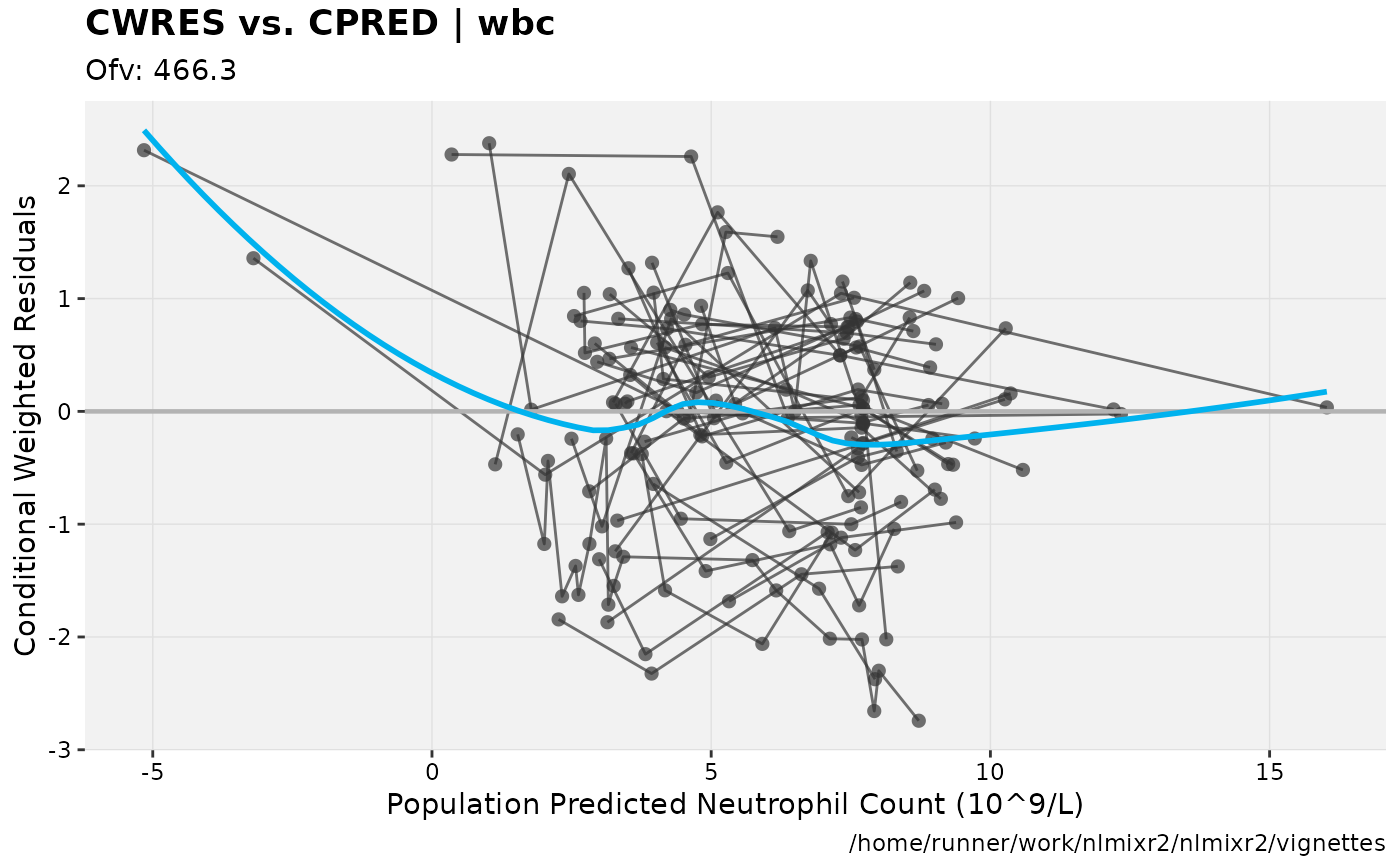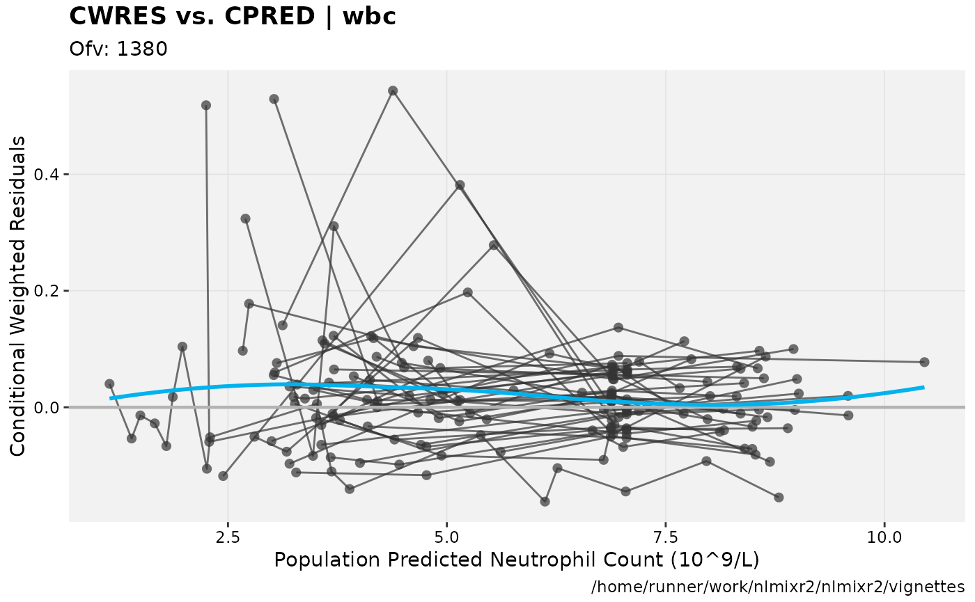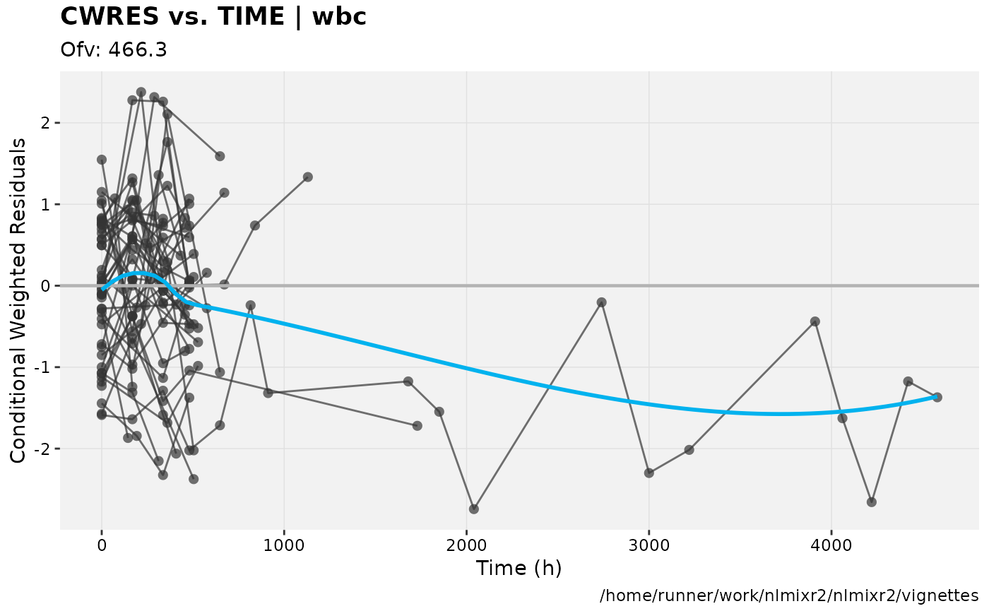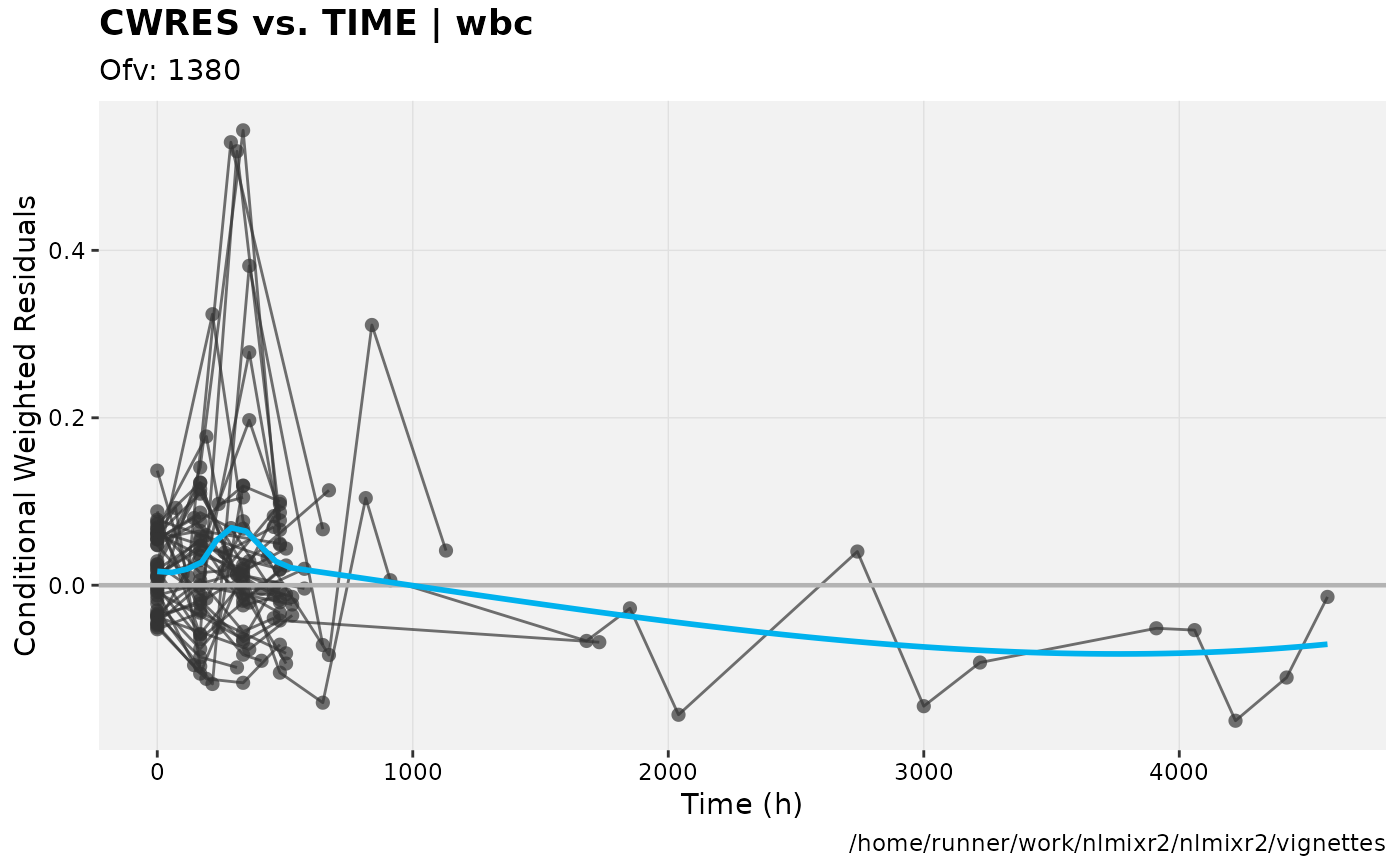 fit.F <- nlmixr(wbc, d3, est="focei", list(print=0), table=list(cwres=TRUE, npde=TRUE))