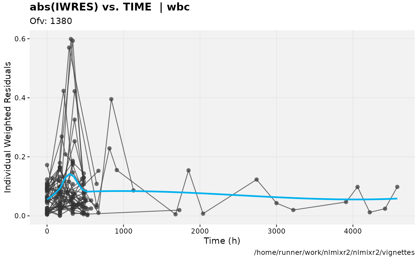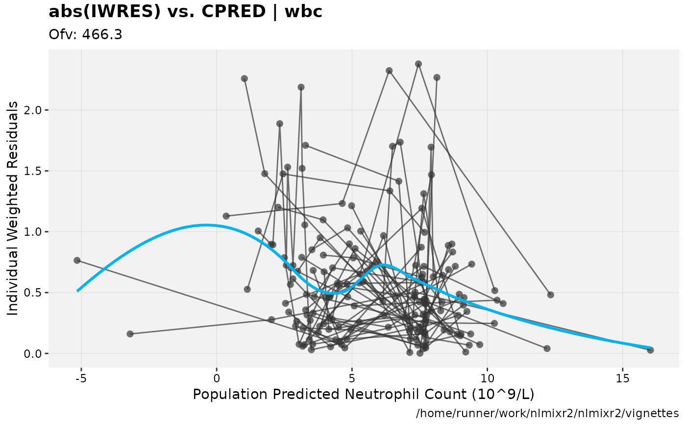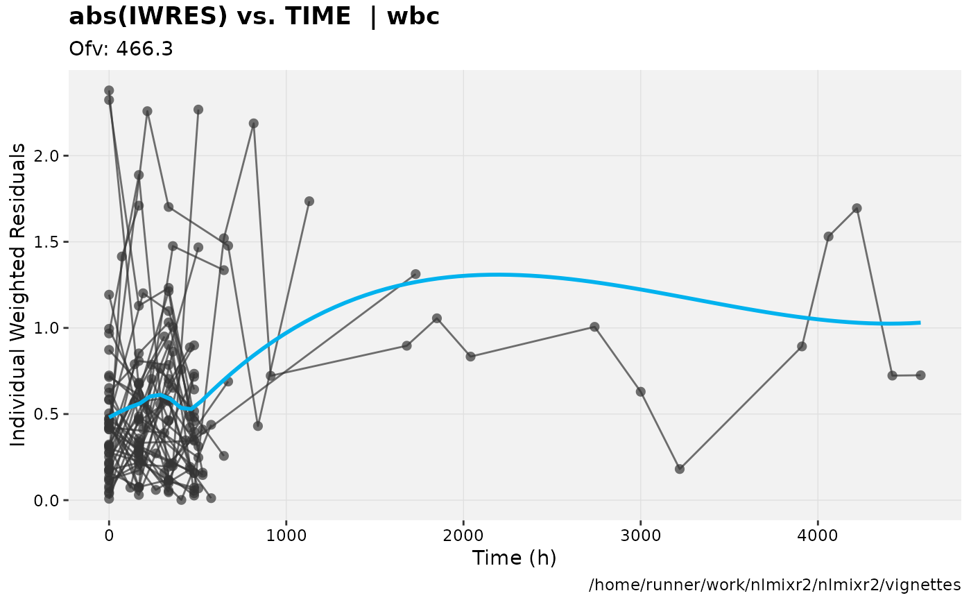 fit.F <- nlmixr(wbc, d3, est="focei", list(print=0), table=list(cwres=TRUE, npde=TRUE))