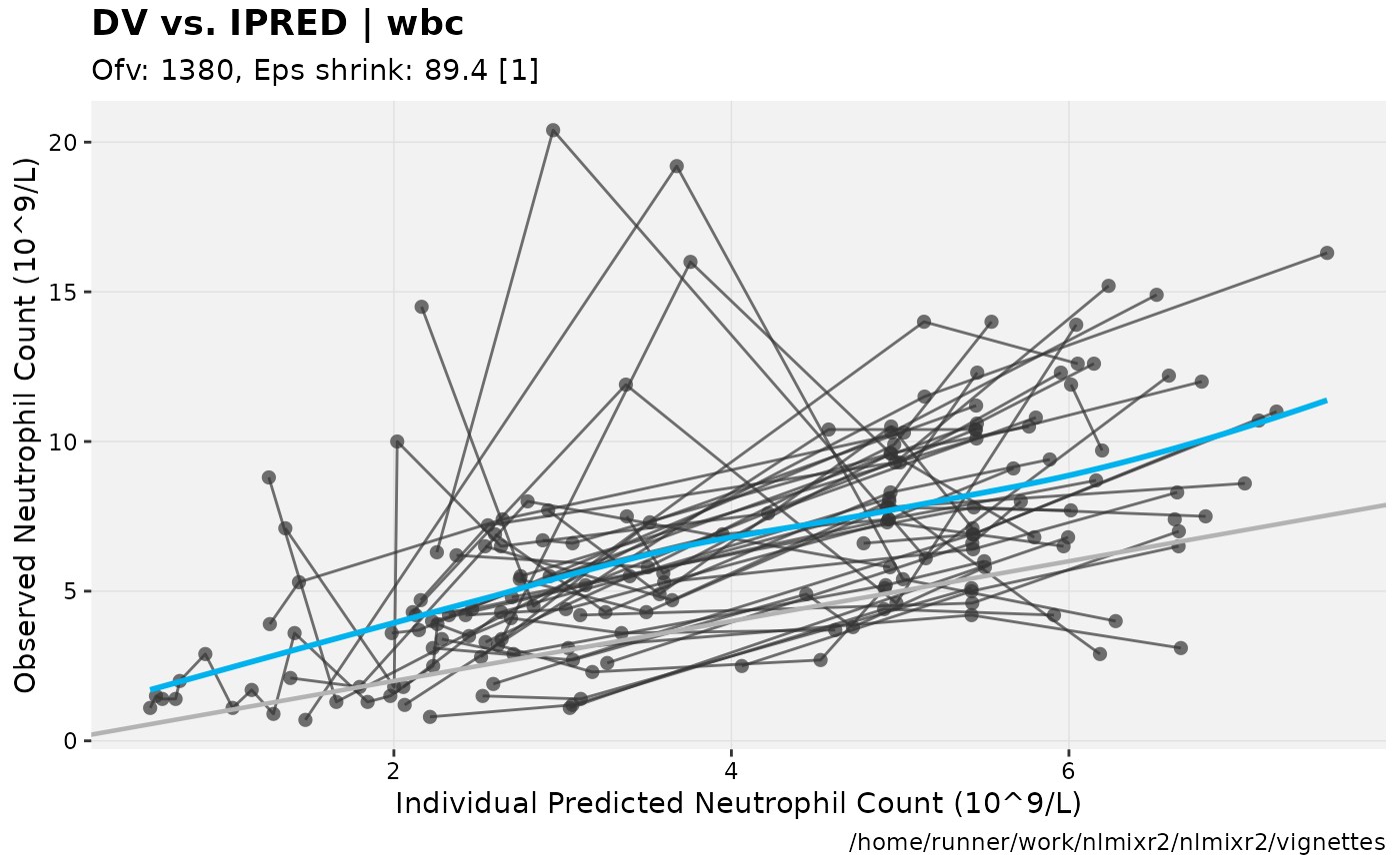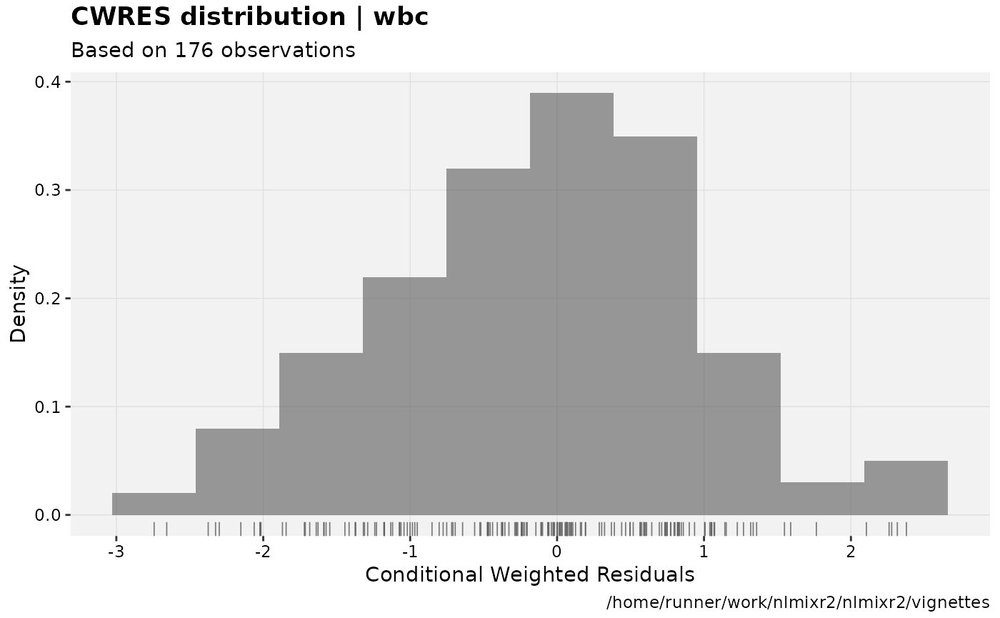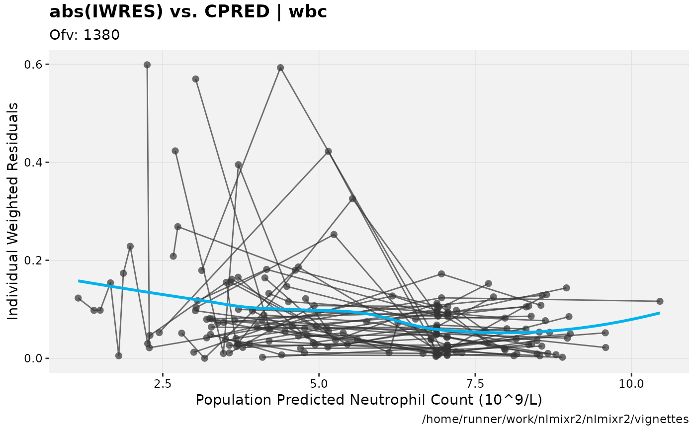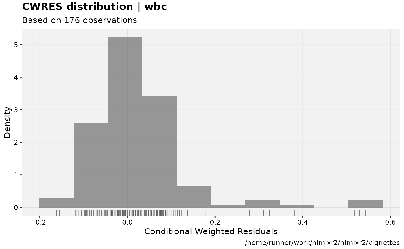 fit.F <- nlmixr(wbc, d3, est="focei", list(print=0), table=list(cwres=TRUE, npde=TRUE))