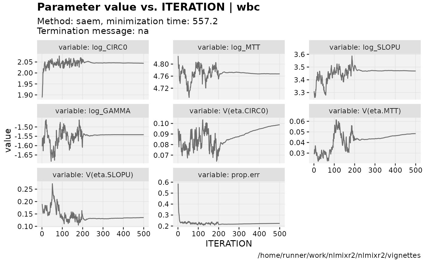 fit.S <- nlmixr(wbc, d3, est="saem", list(print=0), table=list(cwres=TRUE, npde=TRUE))